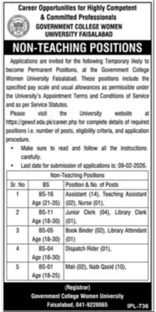 How to apply for Government College Women University Faisalabad jobs 2026.